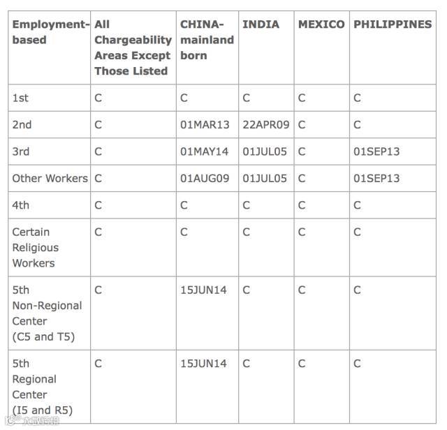 3. 表B,DFA截止日,2014年6月15日。是否开放,得看USCIS(移民局)的态度,在一周之内他们将公布,是按照表A或表B,来接受I-485(在美国调整身份)的申请。