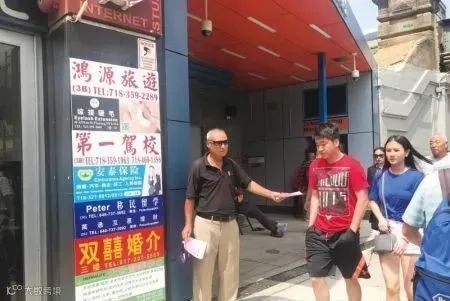 28日,天气很热,赵先生像往常一样在法拉盛长岛铁路缅街站下面发传单,他已经发了好几年,他吆喝的声音“第一驾校、鸿源旅游”似乎变成了一些人耳朵里熟悉的话语。赵先生自己说,发传单也讲究方法,吆喝就是他的方法。所谓“卖什么就吆喝什么”,吆喝的好处是别人知道你在发什么,他们如果需要就会自己来拿,如果不需要就不拿,这样他的传单也不会浪费。他说,切忌的是不能把传单强硬地甩到别人身上,这会引起别人的反感。