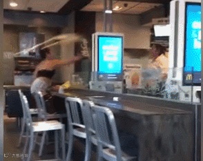 每日邮报报导,美国一家速食店员工与顾客发生激烈肢体冲突,顾客先是将手上奶昔洒向员工后,再以托盘攻击对方头部,员工被打后,连续以徒手反击,让周遭民众纷纷看傻眼。