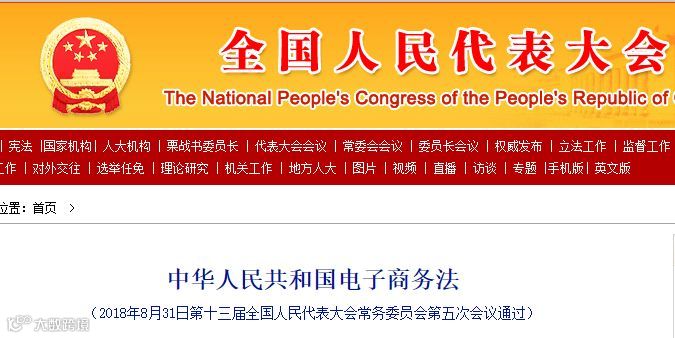《中国人民共和国电子商务法》将明年1月1日正式实施!