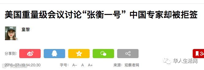 无独有偶,昨日有一则消息显示“美国重量级会议分会讨论‘张衡一号’,中国专家却被拒签集体缺席”的新闻。