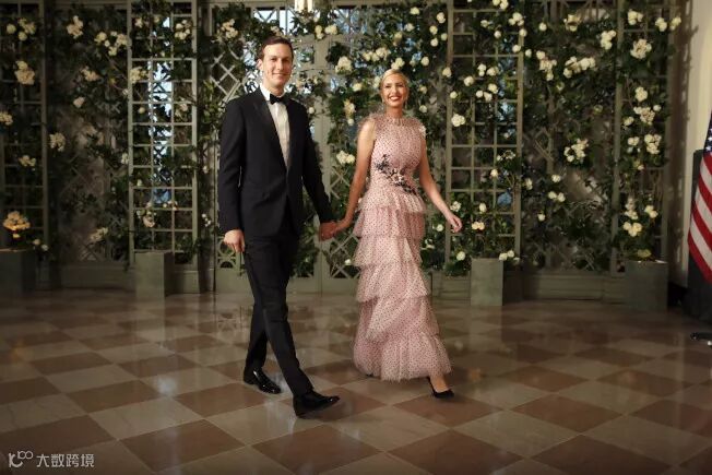 川普总统女儿伊凡卡和女婿库许纳出席国宴。(美联社)