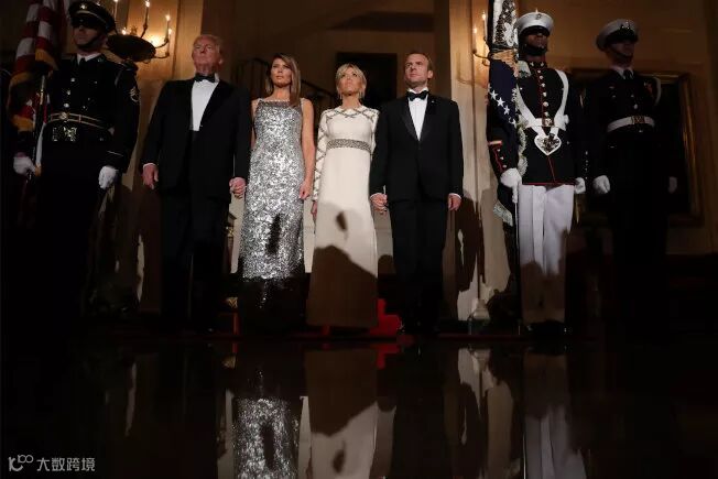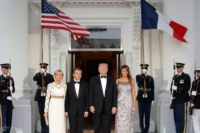川普总统24日迎来上任后的第一位正式白宫国宾--法国总统马克宏与第一夫人碧莉姬‧马克宏,不仅以盛大军礼观迎,更以高规格国宴款待法国元首伉俪。但白天公开活动,众人眼光都聚集在美法两位第一夫人的身上,不尽两人似有默契,在初看时节,不约而同穿上优雅白色套装,尤其是美国第一夫人梅兰妮亚还戴起大白盘帽,令人眼晴为之一亮,大西洋两岸社媒隔空热议,褒贬有之。