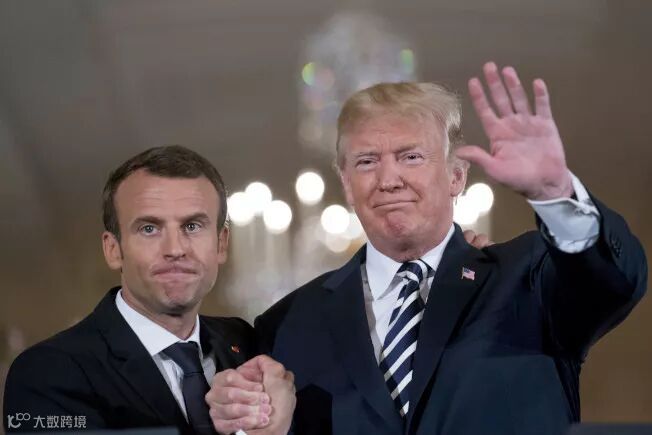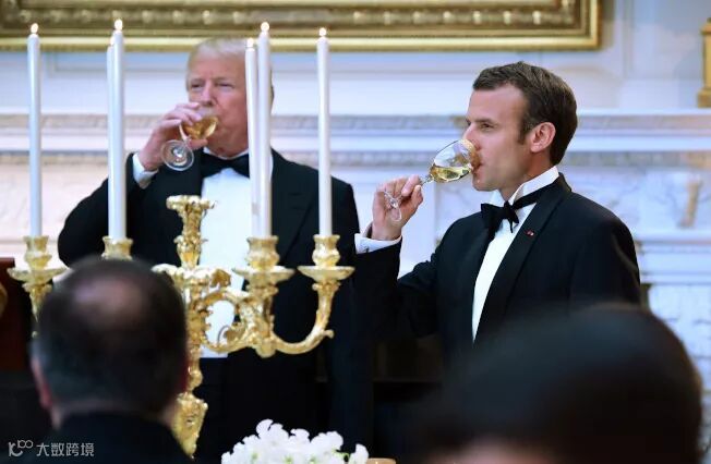 川普夫妇举行国宴欢迎到访的法国总统马克龙夫妇。(路透)