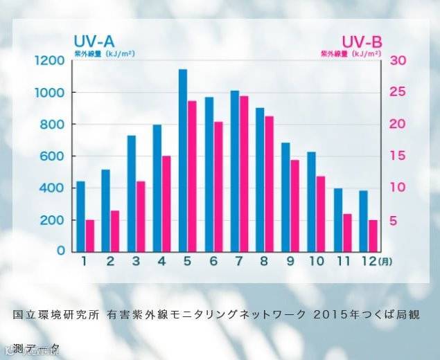 (1-12月的紫外线,信息来源:日本国立环境研究所,有害紫外线检测网)