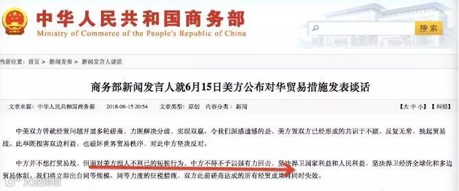 关于这场贸易战,中方其实并不想打,但今天中国商务部表示,现在局面成这样,十分遗憾。