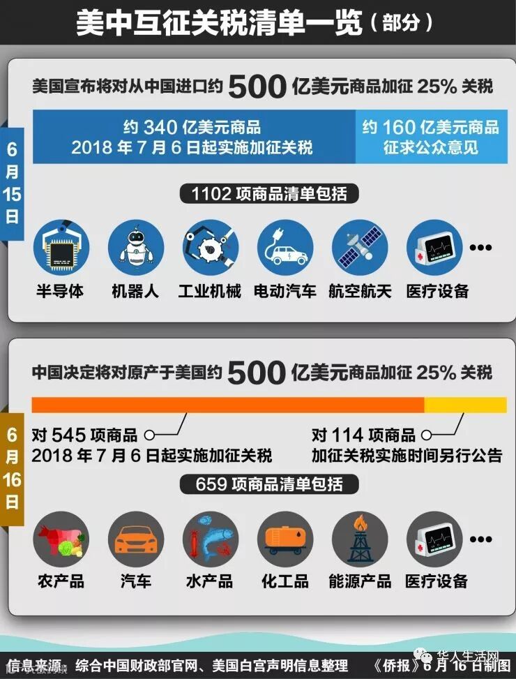 2018年6月15日,美国政府宣布,将对从中国进口的约500亿美元商品加征25%的关税。