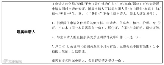 附属申请人材料:主申请人父母、配偶、子女可作为附属申请人,需提供亲属关系证明(户口本、公证书、出生证、结婚证等)。