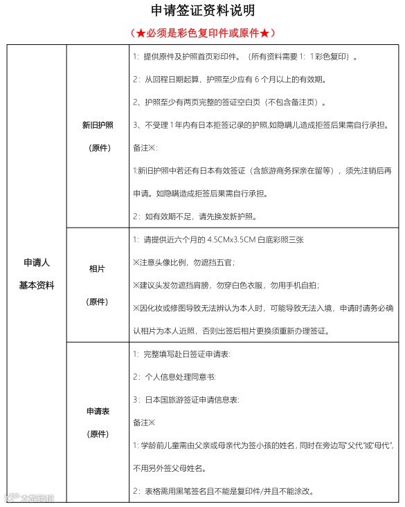 旧护照(如有)需一并提供,若含有效日本签证需先注销。