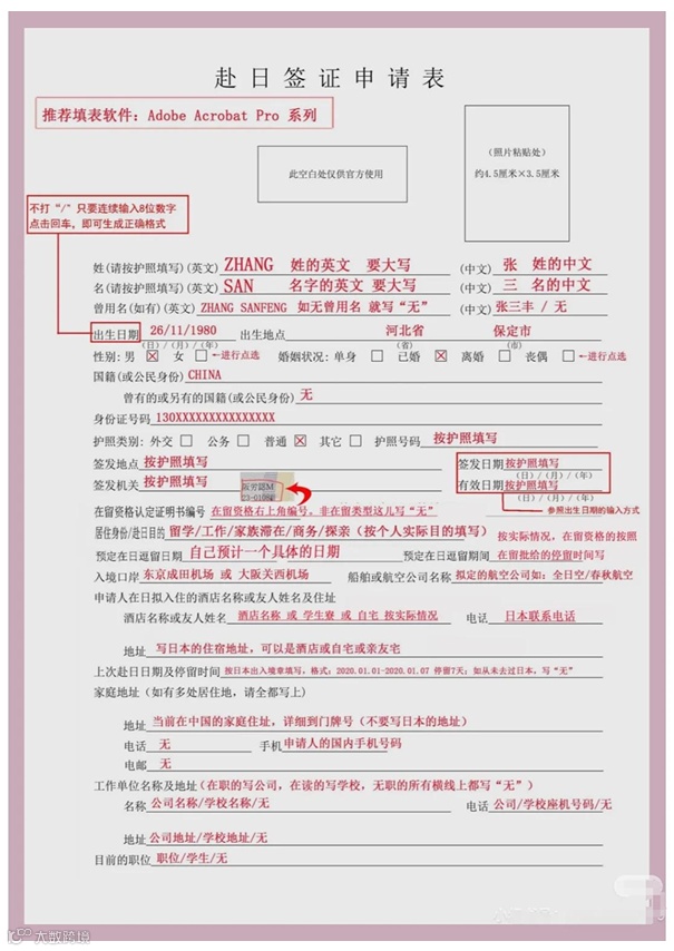 需准确填写赴日日期、停留时间、公司信息(公司电话需真实有效,可留手机号但非本人号码)。