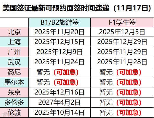 面签时间速递(11月17日)