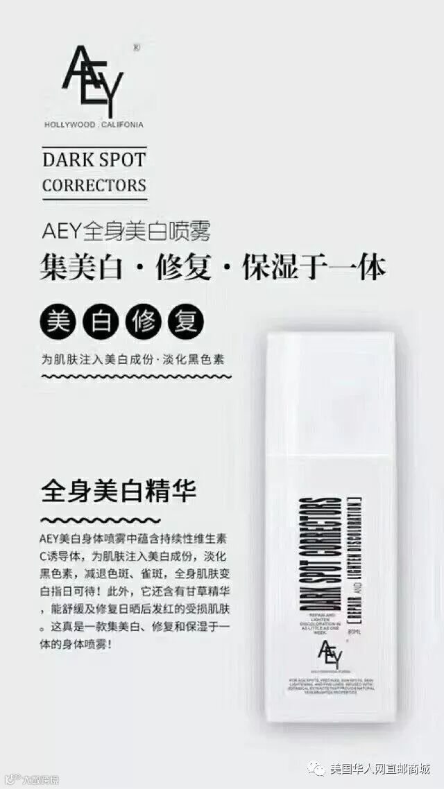 Aey不止有瘦身喷雾还有美白喷雾哟夏天快到了,想要全身灯泡肌的看过来!解决私密处的肤色不均匀,黑色素沉淀,暗黄肌肤!天然无添加。
