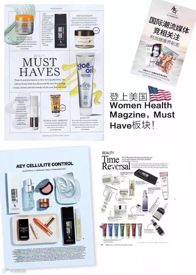 AEY燃脂瘦身喷雾,并且荣登ELLE,instyle等杂志,被列入最受欢迎的几款美容单品!