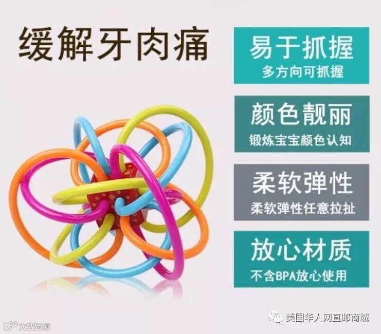 缓解牙肉痛、易于抓握,可多方向抓握、颜色亮丽锻炼宝宝颜色认知、柔软弹性好,任意拉扯、放心材质,不含BPA放心使用!