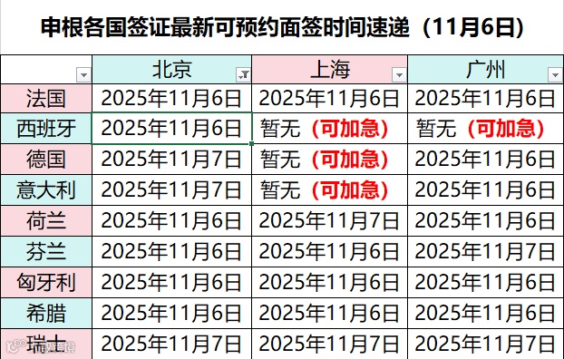 还在为申根签证预约发愁吗?当下几个领馆的预约号基本都排到11月和12月了,正常预约的话,时间实在太紧张,稍有不慎就可能耽误行程。别担心!我司可提供渠道加急面签服务,没有风险,成功率高!