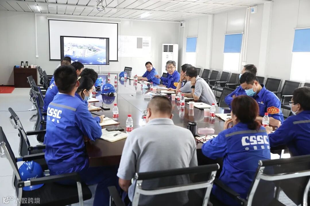 8月2日下午,在长兴二期建设阶段性推进会议上,公司党委书记、董事长陈建良强调,要紧紧抓住上海市重大工程项目契机,咬定长兴二期建设目标任务不松懈,坚持百年大计理念不动摇,合力攻坚,抢抓进度,高质量推进工程建设,统筹谋划整体搬迁,推进数字化管理、智能化制造,奋力打造国内领先、世界一流高端海洋装备基地。中船九院领导孙伟军、孙璐,公司纪委书记胡敬东及相关监理单位负责人参加。