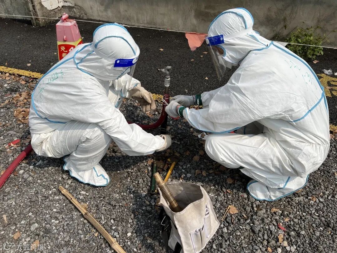王纯青、朱海华、杨军、陆华杰等消杀组同志风雨无阻,早出晚归奔波在消毒消杀一线,他们克服重重困难,面对日渐炎热的天气,身穿大白,坚守岗位,始终奋战在第一线。