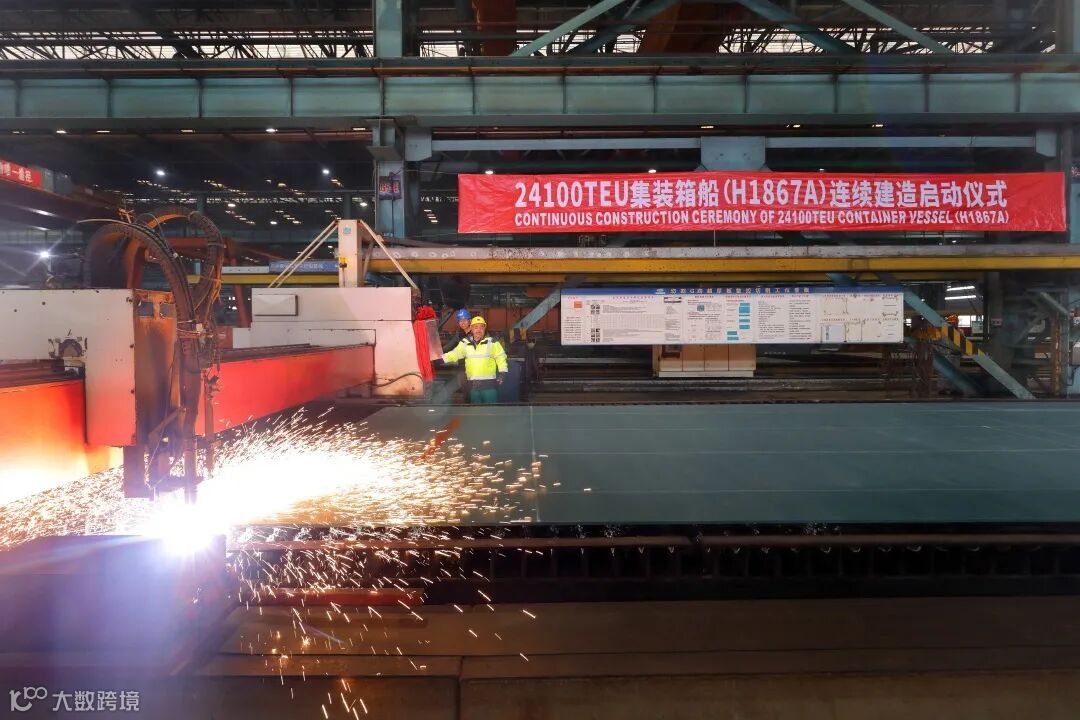 24100TEU超大型集装箱船是目前全球装箱量最大、载重吨位最大的船型,该项目共4艘船,项目首船于2021年7月30日启动连续建造。