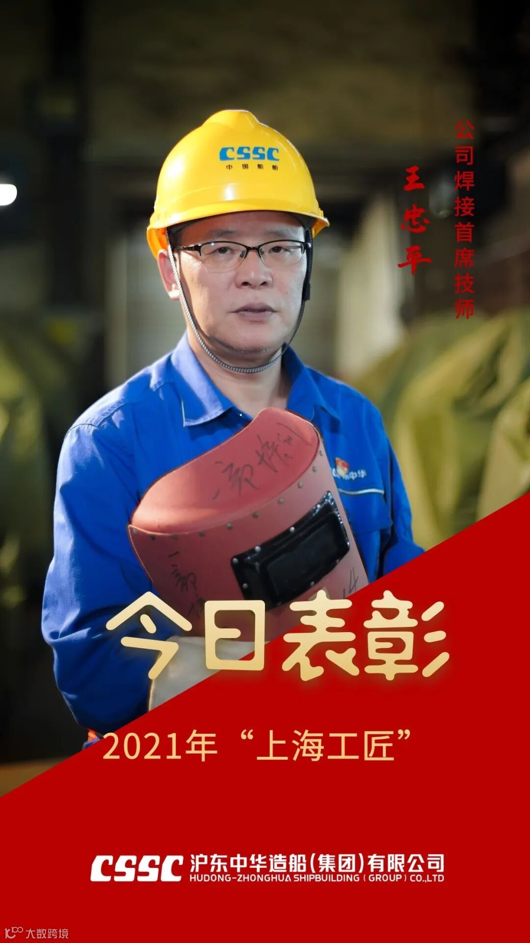 热烈祝贺公司焊接首席技师王忠平获2021年“上海工匠”荣誉称号!