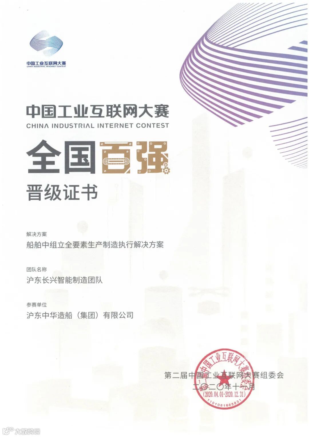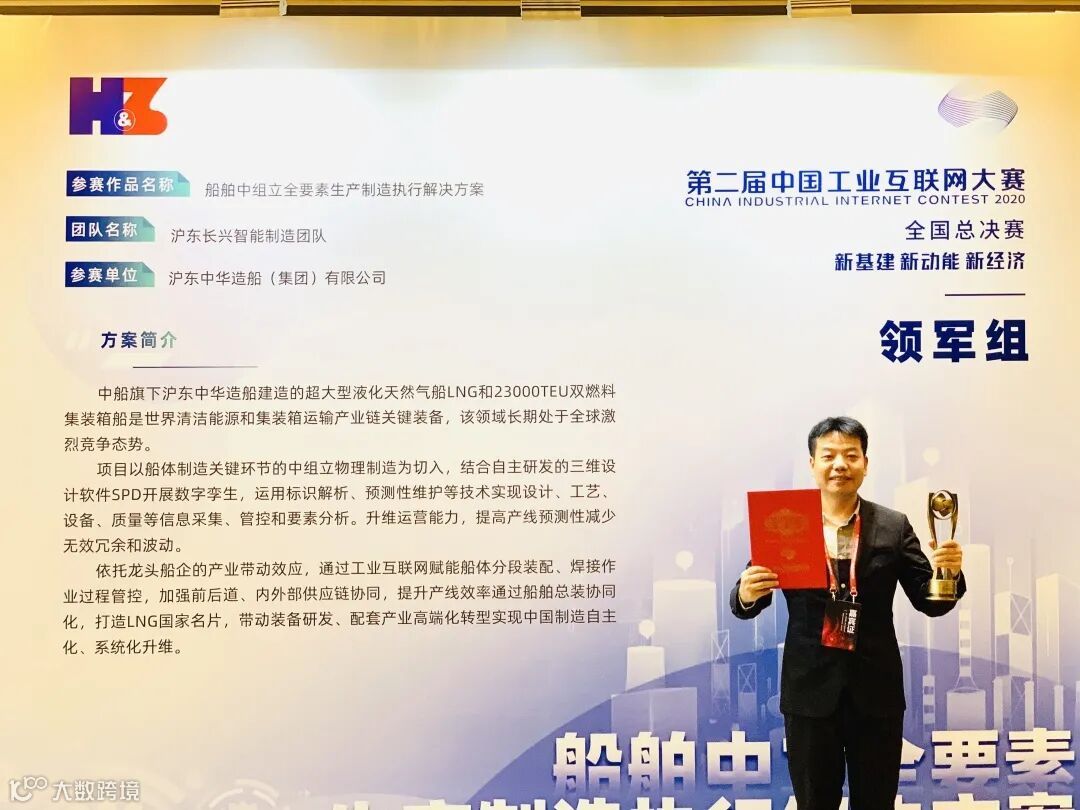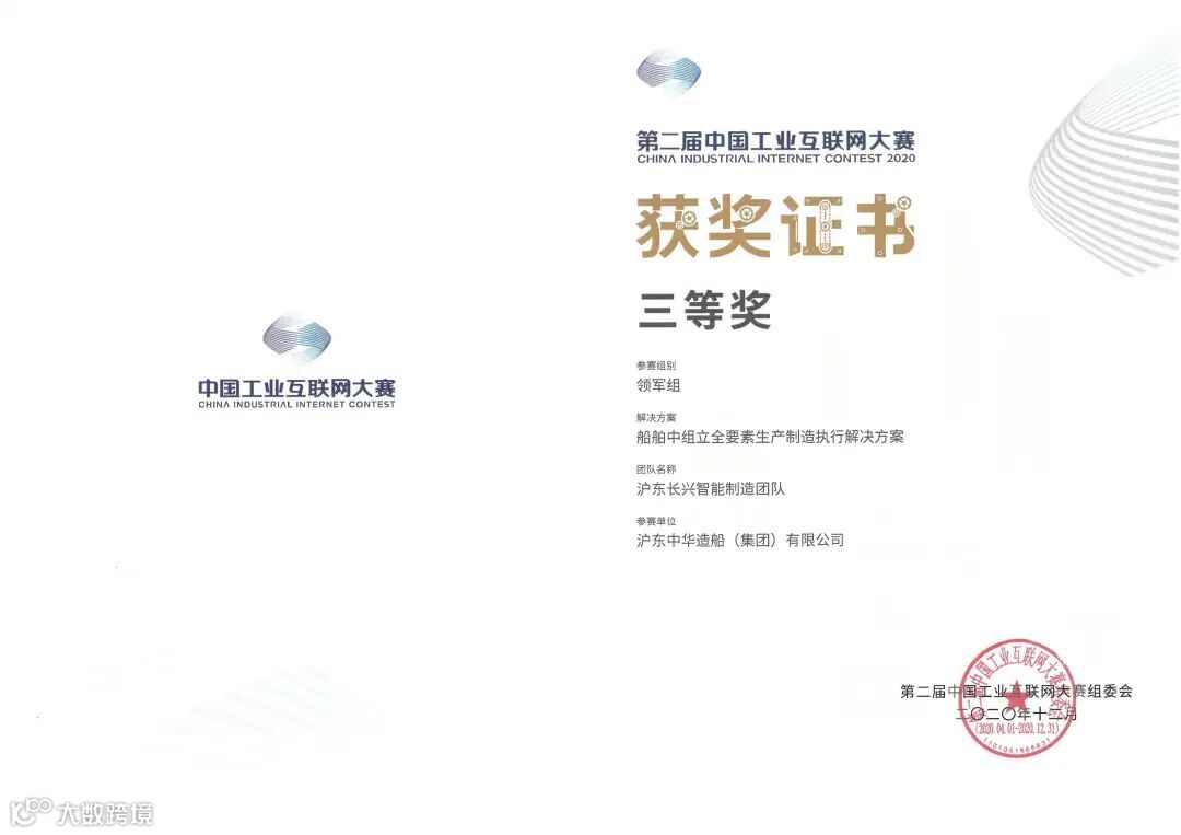 中国船舶集团旗下沪东中华“沪东长兴智能制造团队”的参赛作品《船舶中组立全要素制造执行管理解决方案》,从全国1457个项目中脱颖而出,获得全国总决赛三等奖。这是中国船舶集团旗下唯一入围全国总决赛并获奖的项目。