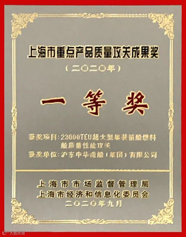 近日,由上海市市场监督管理局和上海市经信委共同举办的“2020年上海市重点产品质量攻关项目”奖项揭晓,由总装二部申报的《23000TEU超大型集装箱船燃料舱质量性能攻关》、《49000T化学品船质量控制技术攻关》分别荣获一等奖和二等奖,市政府有关领导对获奖者代表进行了颁奖。