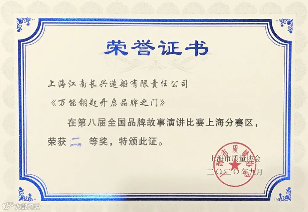 9月3日,第八届全国品牌故事大赛(上海赛区)暨2020年上海市质量品牌故事比赛隆重举行,中国船舶集团旗下沪东中华是上海船舶行业唯一入围决赛的船企。总装三部《建造优质舰船 铸就中国品牌》、总装四部《万能钥匙开启品牌之门》讲稿入围现场演讲,并双双斩获演讲比赛二等奖的好成绩,为公司“质量月”的开展开好局起好步。