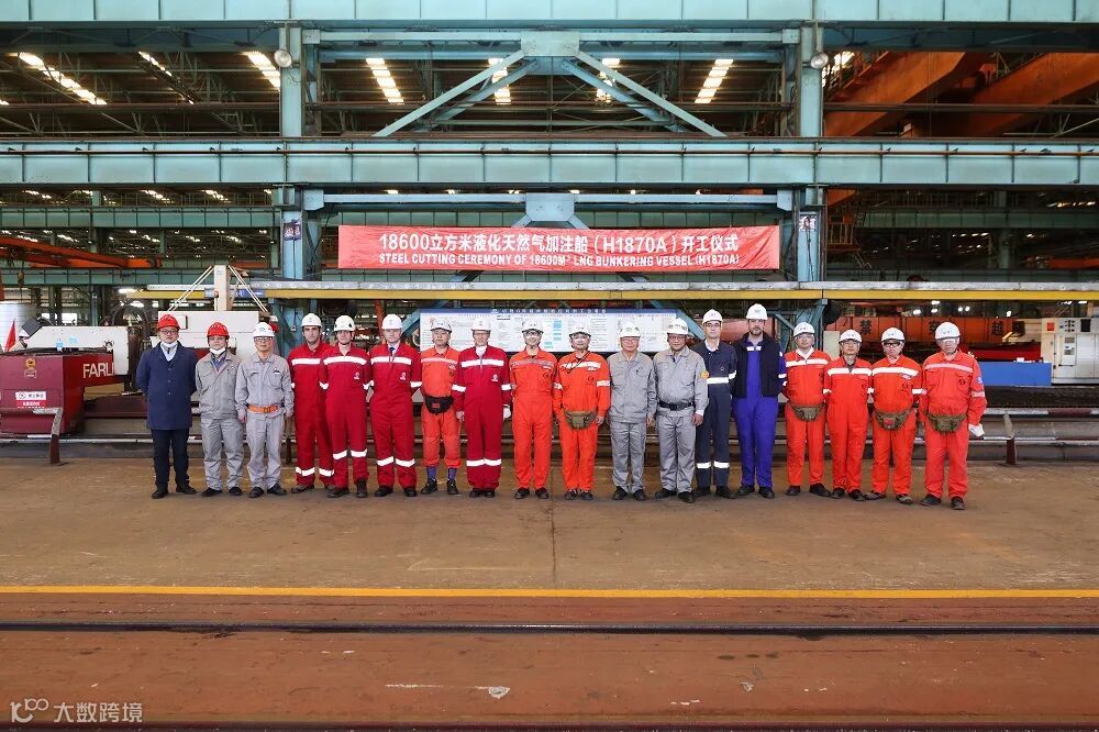 中国船舶集团沪东中华为商船三井建造的另一艘18600立方米LNG加注船在长兴造船基地顺利开工。