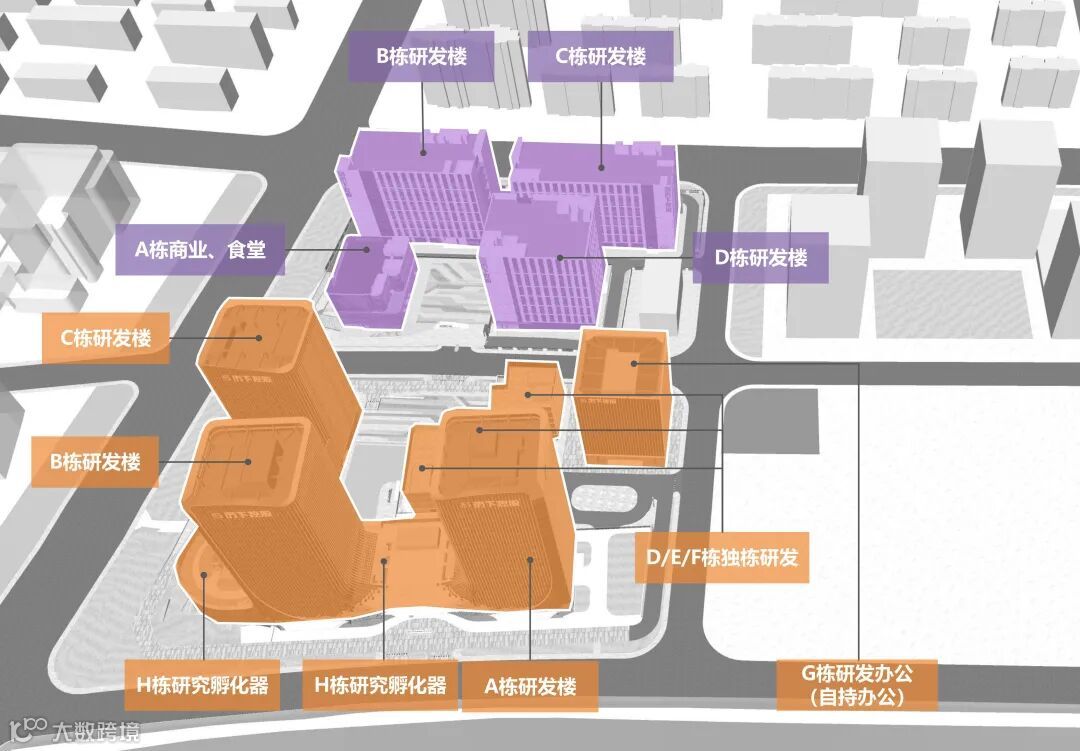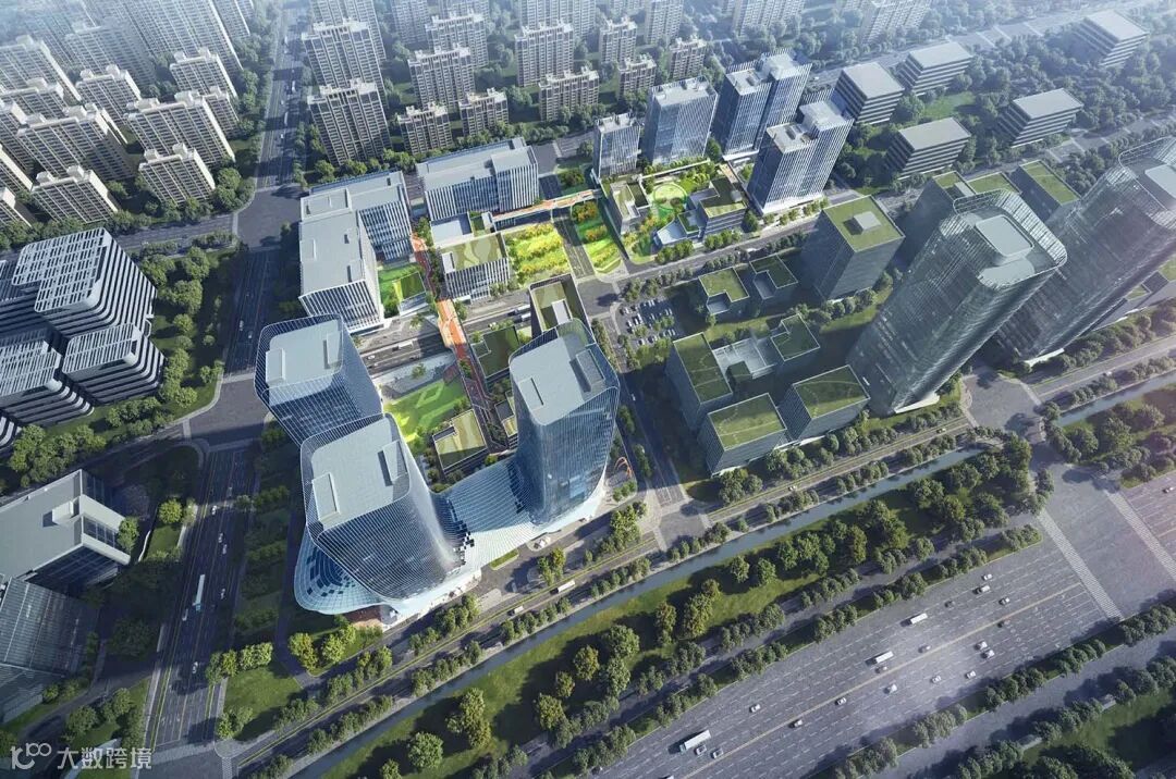 建筑以“凤起明湖”为主题,利用凤冠的弧形形态,圆角体量柔和融入城市,拔高塔冠形成凤冠概念,以明湖长岭为基底,腾科技智远之凤翼,打造出生态园区四式。