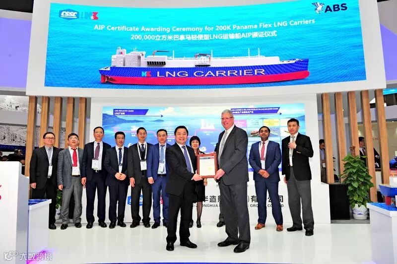 ABS高级副总裁Eric Kleess向公司颁发20万方巴拿马灵便型LNG船AIP证书。