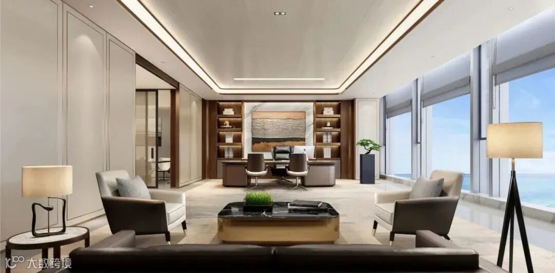 三层挑高的中庭空间,俯瞰前海,视野开阔大气、高贵典雅,彰显集团企业的国际化形象。