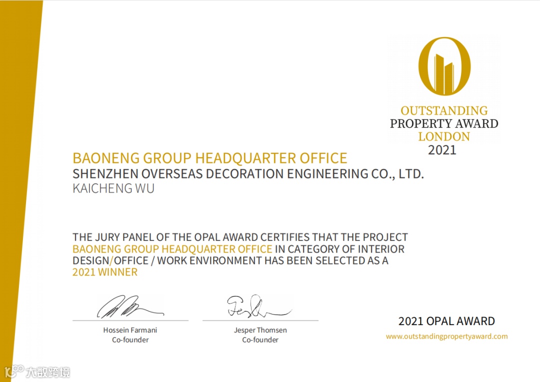Outstanding Property Award伦敦杰出地产大奖(OPAL) 由全球驰名的Farmani Group创立,旨在表彰和奖励在地产开发、建筑设计和室内设计领域做出卓越贡献的全球人才。