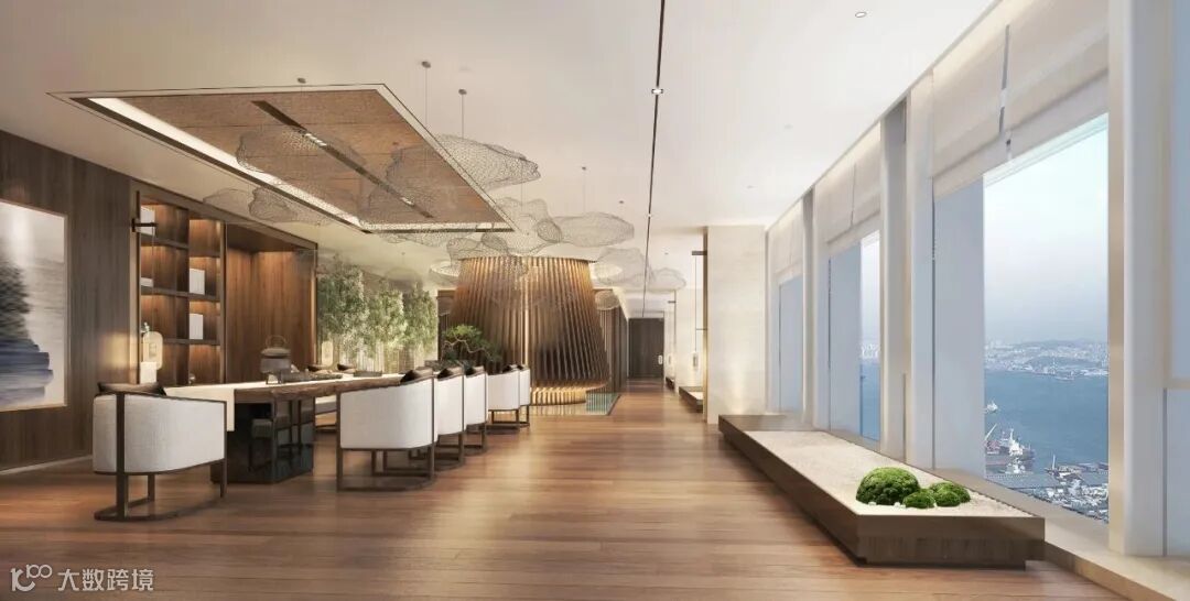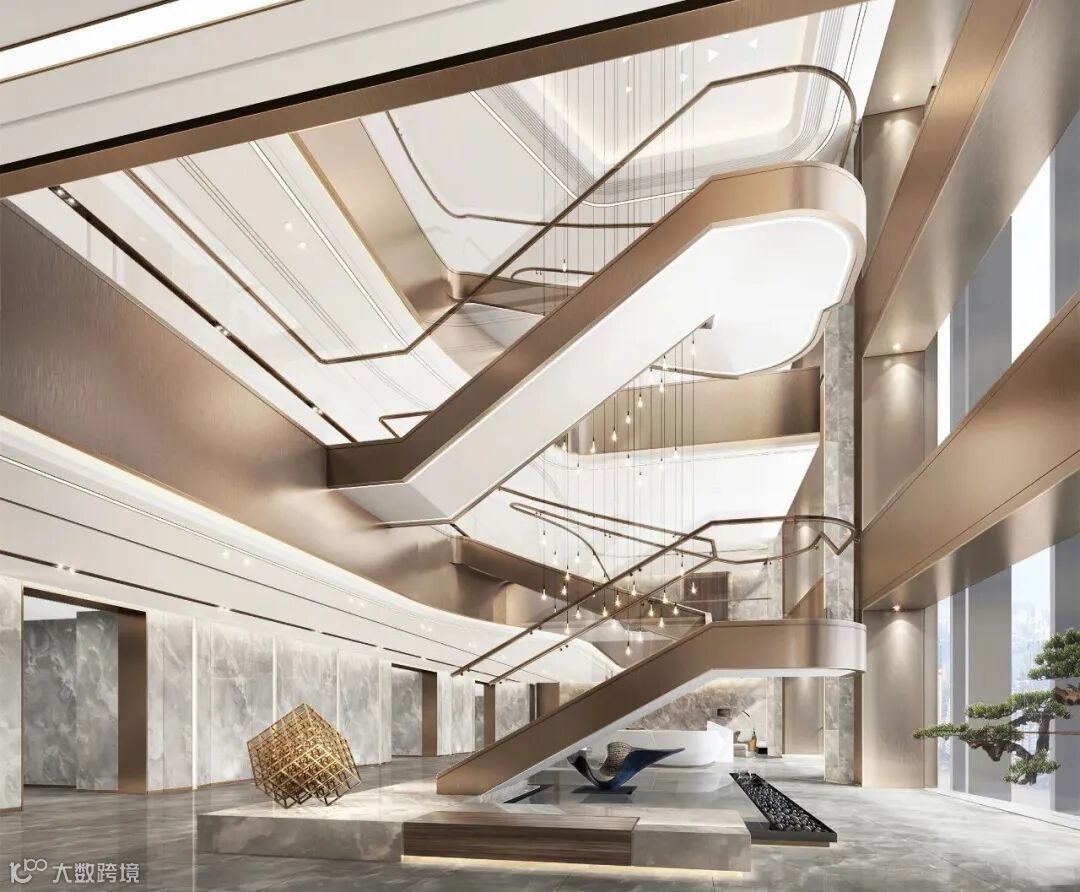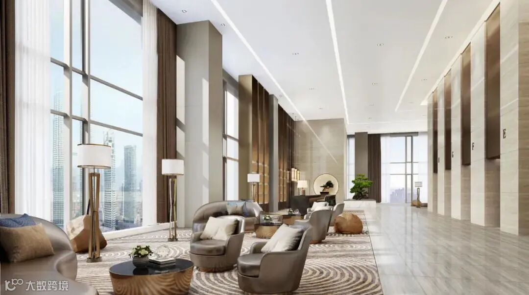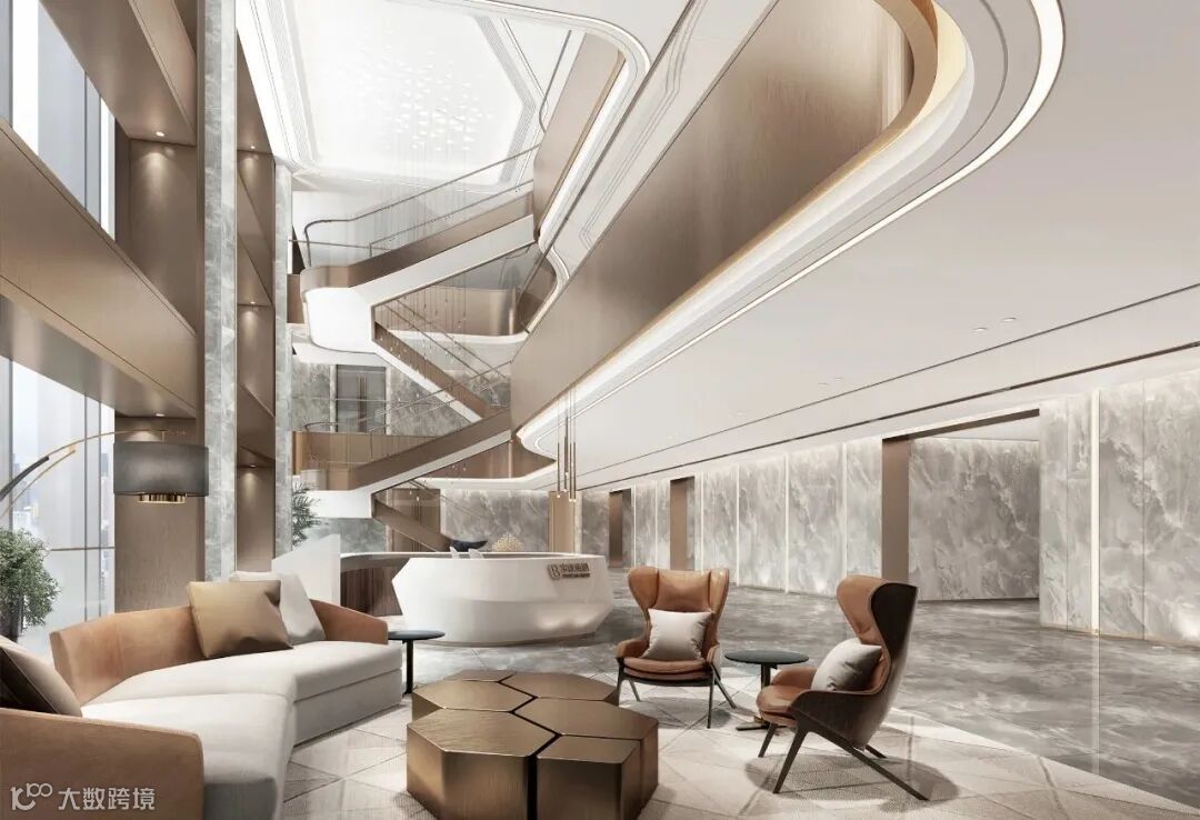 三层挑高的中庭空间,俯瞰前海,视野开阔大气、高贵典雅,彰显集团企业的国际化形象。