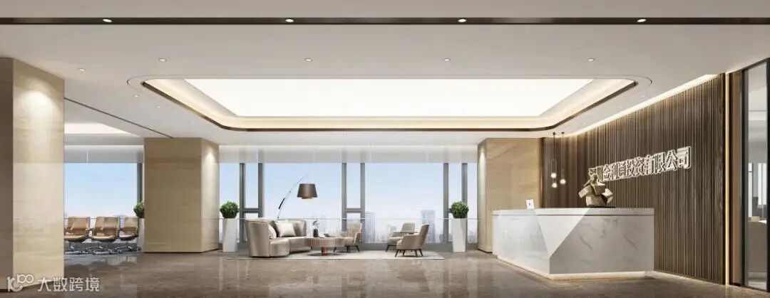 两层挑高的空间形态,高端舒适、大气磅礴,与国际化金融行业的风范相融合,玻璃幕墙俯瞰着整个前海中心和小南山。