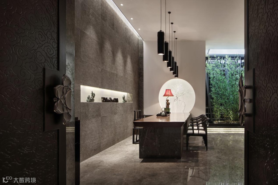 设计采用禅意东方为会所的整体风格理念,摒弃繁琐的装饰,以太极为方向,注重自然、静寂、清雅的精神特质,净化喧嚣尘世中人们心灵的浮燥,追求天人合一的境界。