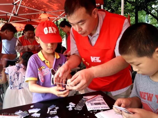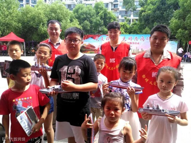 虽然烈日炎炎,却阻挡不了居民和学生的热情,上至耄耋老人,下至五岁幼儿,对船模拼装都相当有兴趣。护卫舰和航母模型最受热捧,拆板、打孔、插槽,参与的每个人都一丝不苟,以专注的神情制作船模,力求完美无缺。