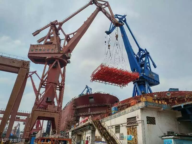 49000吨化学品船集管区单元宽约23米,长约18米,重量约100吨,属于巨型单元。为了突破7号平台单元建造场地起吊能力不能超过64吨的困境,设计管理部在工法策划阶段,与生产管理部、分段制造部、总装二部、精度管理部讨论决定,采用直接通过平板车将托架运输到搭载场地的方案,完成吊装。这项工艺方便一次吊运,减少了对单元精度的影响,最终确保了该巨型单元顺利吊装上船。
