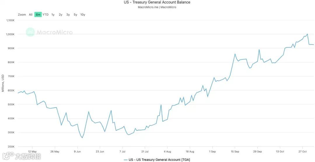 但停摆期间,国会不批准预算,政府没法正常花钱,TGA余额像雪球一样越滚越大。