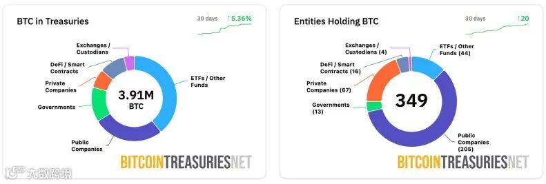 据BitcoinTreasuries数据显示,持有比特币的上市企业已来到205家,持有超过104万枚BTC,这象征着加密资产正逐渐成为新兴企业的储备选择。