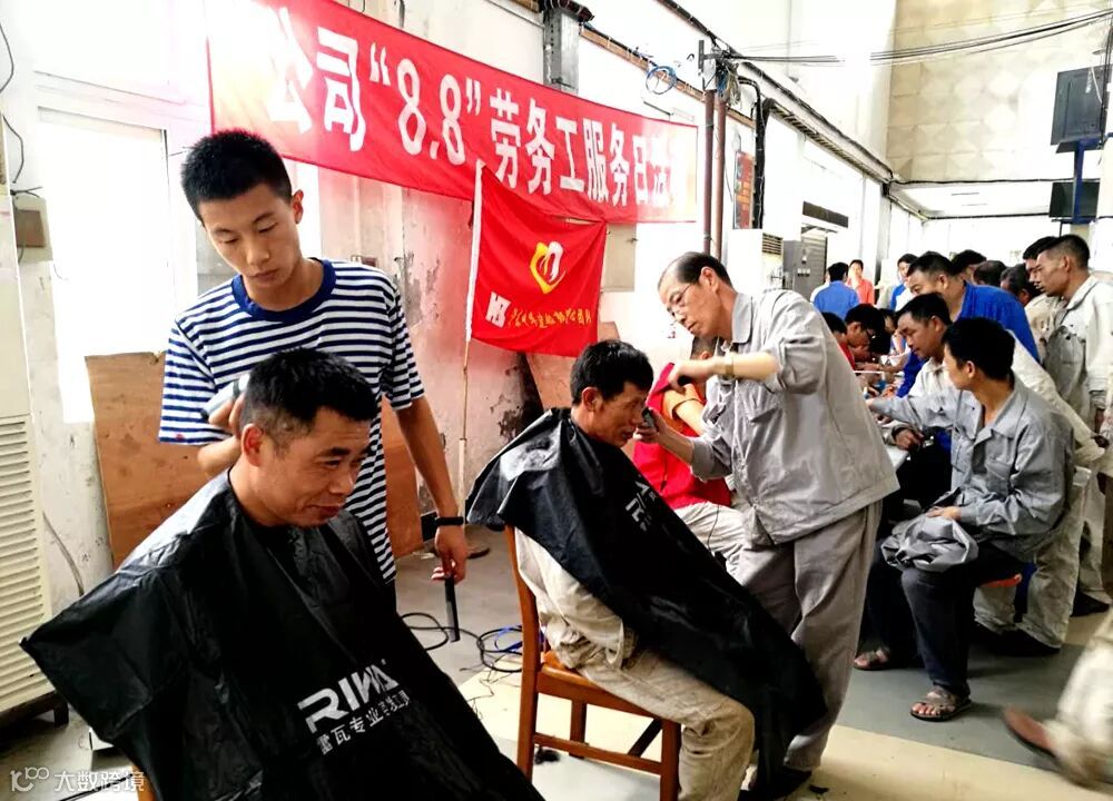 8月15日中午,本部二食堂一楼公司“郭明义爱心服务团队”为劳务工提供法律咨询、健康咨询、义务理发、缝补衣服和手机贴膜等服务项目。长兴造船、总装三部设立了分会场,两岸三地联动,广大劳务工热情参与。活动期间,公司工会劳务工工作委员会为生活困难的劳务工送上工会组织的关爱和慰问。