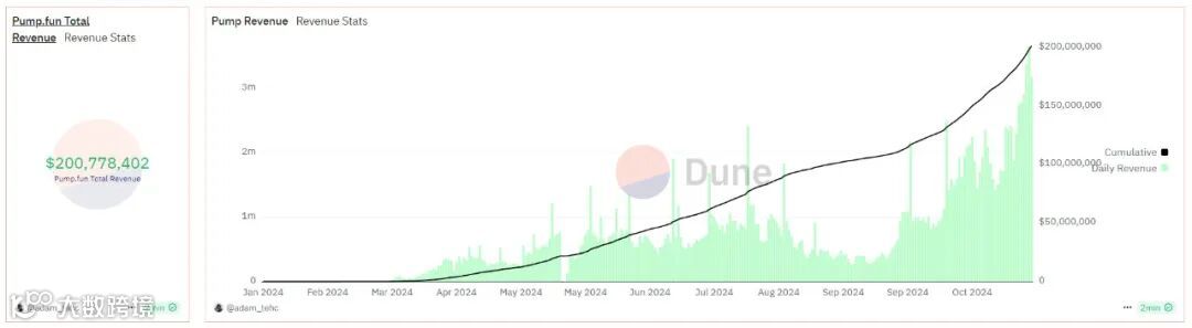 11月17日,据 Onchain Lens 监测,Pump.fun 总收入已超 2 亿美元。Solana 上超过 56% 的代币源自 Pump.fun 。