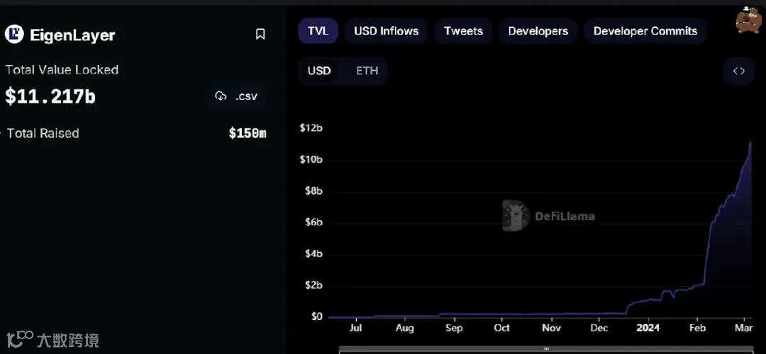 1.Eigenlayer 超过110亿美元的 TVL,成为第三大 DeFi 协议