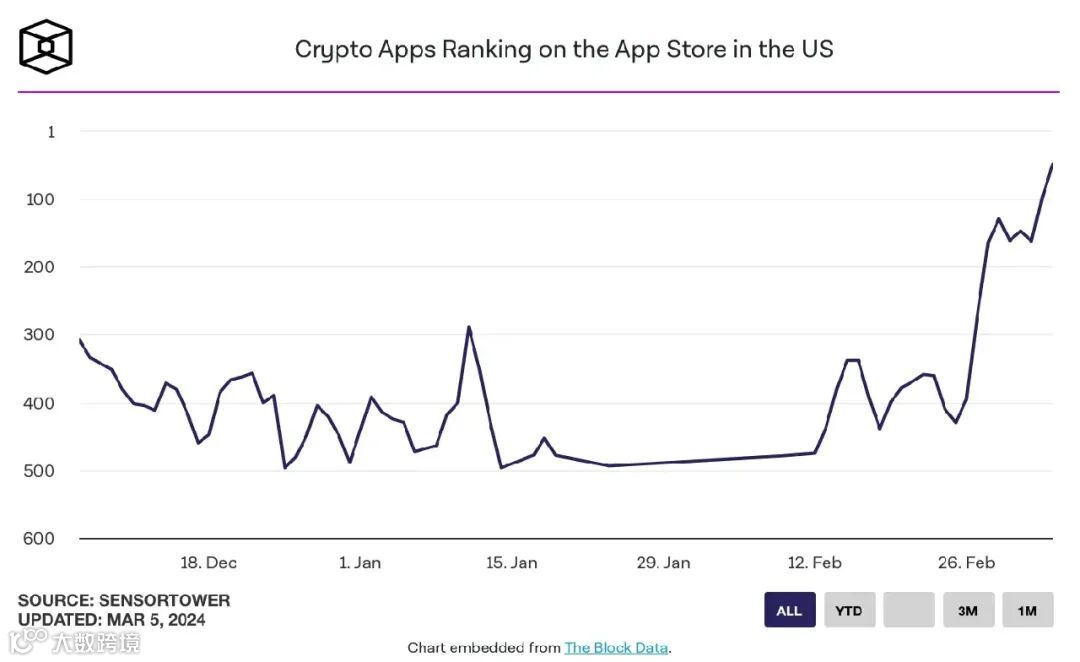 2.Coinbase 进入 App Store 前50名应用程序