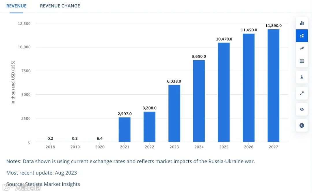 根据 Statista 的数据,预计到 2023 年,香港市场的 NFT 收入将达到 603.80 万美元,年增长率(CAGR 2023-2027)为 18.46%。