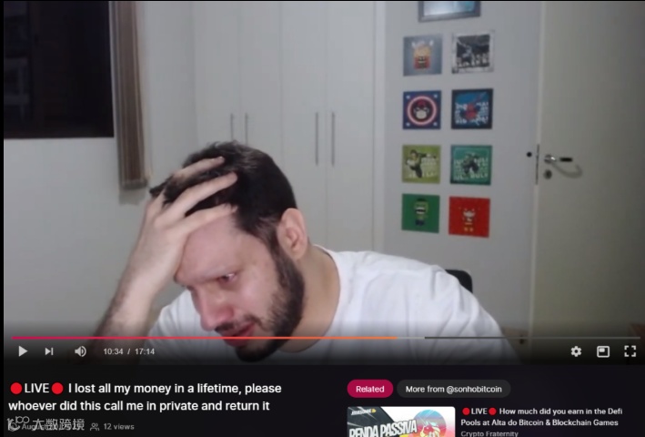 随后Bianco又赶紧打开直播,一把鼻涕一把泪,恳求粉丝将他的加密货币退还