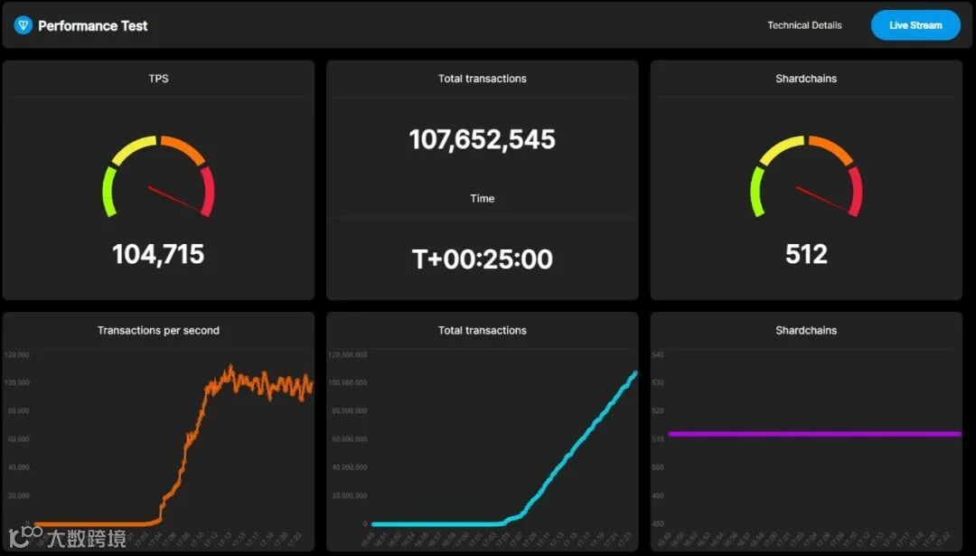 11月1日,TON官推发文称,TON现在正式成为世界上最快的区块链,达到每秒 104,715 笔交易(TPS)。