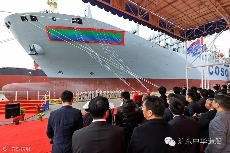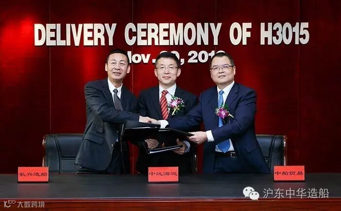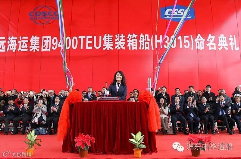 该船由沪东中华所属长兴造船建造。当天上午9时,交船签字仪式举行。中远海运集装箱运输有限公司副总经理侯立平,中国船舶工业贸易公司副总经理胡凯,沪东中华常务副总经理、长兴造船总经理黄一平共同签署了交船文本。