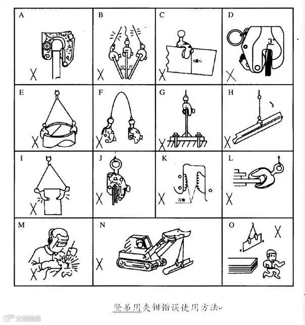 1) 根据起吊物体的重量和厚度,正确选用型号。夹钳的夹持安全厚度为最大开口的1/4以上,安全吊运负荷应不少于最大许用载荷20%。被吊物体表面硬度不得大于HRC28(HB=269)。