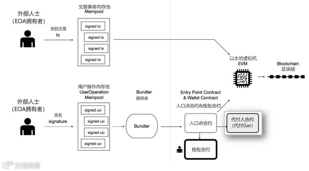 简单来讲,就是把钱包变成抽象的智能合约账户。账户信息直接存在以太坊虚拟机中,用户不再需要下载钱包应用,也不再需要绞尽脑汁保护钱包私钥。