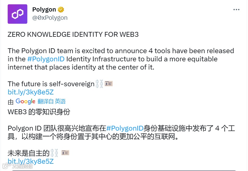 3 月 2 日,Polygon 推出基于零知识证明的 Web3 身份服务 Polygon ID,可以在不泄露个人数据的情况下验证用户身份凭据。Polygon ID 利用 Iden3 协议和 Circom ZK 工具包,这种身份基础设施允许任何人成为 Web3 身份的颁发者、验证者或持有者。链下数据现在可以以已验证凭证格式用于无需信任的链上验证。