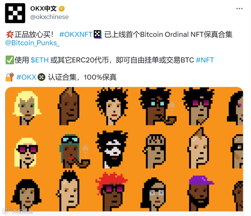 欧易NFT市场上线首个Ordinals NFT保真合集